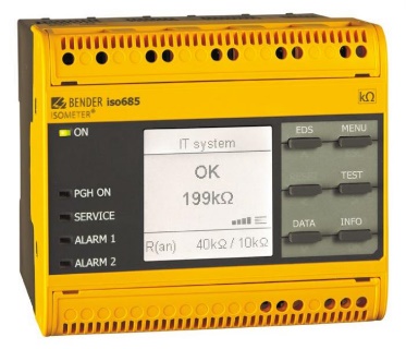 Vigilantes de aislamiento para circuitos de corrientes principales en sistemas IT, con componentes conectados directamente a convertidores de corriente, rectificadores. Instalaciones SAI, redes de baterías.